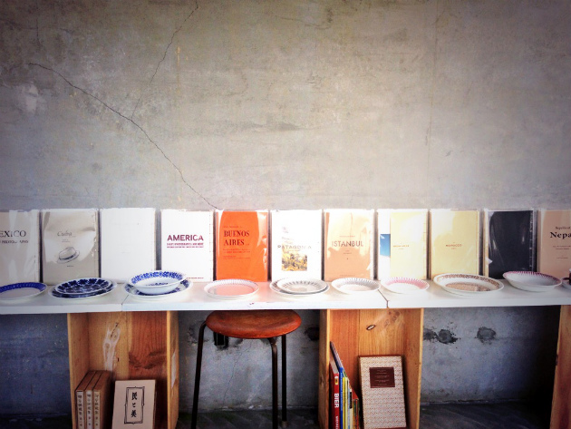 古書と北欧ヴィンテージ食器を配した、4階カフェスペースにて陳列しております。