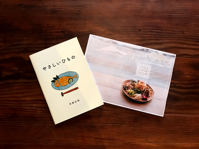 写真は、川口さんの〈真鶴出版〉が2016年7月に発行した『やさしいひもの』(左)と、栞日の出版部門(名称検討中)が2017年7月に初めて発行した『アルプスごはんのつくり方』(右)。本をつくることで、自分の暮らす地域や街の、人や食や文化について、どこかの誰かに伝えること。当日は、そんなことまで話せたら、と考えています。