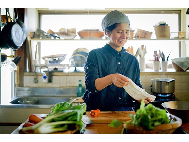 1974年生。東京と長崎育ち。2003年夫・奥津爾と吉祥寺にオーガニックベースを立ち上げる。「素材をいかし、自分もいかす台所の学校」をコンセプトに、料理教室・オンデマンド講座・書籍などを通じて、風土と身体に根ざした料理を伝えている。吉祥寺と雲仙を行き来しながら、種や有機農法、伝統製法を守り継ぐ活動も。年の離れた3児の母。