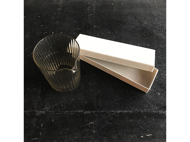 写真は、松本巡回展で併設されている、〈桃居〉広瀬さんがセレクトした「工芸の現在」を示す品々の中から、思わず求めた二点。津田清和さん(奈良)の硝子と、ハタノワタルさん(京都)の紙箱です。