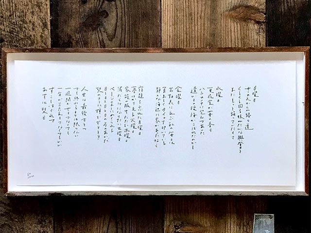 4年前の移転リニューアルオープンのとき、詩人のウチダゴウさんが書き下ろしてくださった栞日の詩は、「すこしはぐれて あすは栞日」というフレーズで締め括られます。書店、喫茶店、宿、ギャラリー、そして銭湯。栞日が営む場は、一見ばらばらで、この時代においては明らかに「不要不急」な空間ばかりですが、そのどれもが、この街に暮らす誰かにとって、この街を訪れる誰かにとって、日常あるいは世間から「すこしはぐれて」向かう先になったら、と願っています。