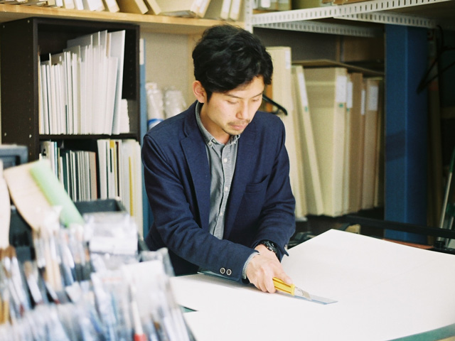 学校帰りの高校生がスッと店内に入っていく。程なくしてまたスッと出てくる。夕方に窓際のカウンターで仕事をしていると、視界の左隅でときおり起こる出来事だ。〈栞日〉の西隣りには、画材屋〈シナノ画房〉がある。軒先に吊るされた絵の具のチューブ型の看板がいい味を出していて、ずいぶん長いんだろうな、と眺めていた。訊くと、もう半世紀になるという。伊那出身の西沢幸雄さんが脱サラして従兄弟とふたり、この場所に店を構えたのは昭和44年の暮れ。その頃の駅前通りは歩道が広く、店先に椅子や机を出せたそうで、美術部の生徒が集まって来てはスケッチに励んでいたそうだ。当時、各地で盛んに開かれていたアマチュア絵画教室を巡って画材を販売していたことが、高校の美術教師の間で評判を集め、学校納品の仕事に繋がっていく。数年前、次男の崇さんが「店を継ぐ」と大阪から戻って来た。「大阪時代のバーテンダーもそうだったけれど、その世界に飛び込んだらぐんぐん好きになるタイプ」と崇さん。いまは画材屋の仕事に興味が尽きないという。「家に絵を飾る生活がもっと普通のことになれば」と語る2代目がお隣りにいると判って、無性に嬉しい気持ちになった。