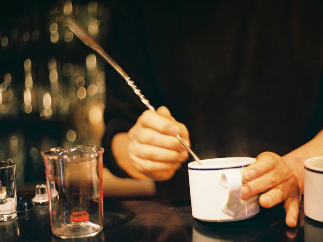 しばらくして、以前から〈アミ〉で交流のあった友人が見つけてきたのが、いまの〈エオンタ〉の空間だ。彼とはかねてから「ジャズが聴ける場所がほしい」と話していた。当時、一階には〈かつ玄〉が入っていたが、二階はまだ空いていて、小林さんは知人伝いにここを借りることができた。「自分でも若すぎると思っていた」という開業は、七十四年三月のこと。ジャズの潮流が、ハードでアバンギャルドなものから、スムースで軽い音楽に大きく変わった時期で、「無謀だとは重々承知」ながら、手元にあった機材と三百枚ほどのレコードで〈エオンタ〉はスタートした。あの〈オーディトリアム〉に倣ってつくった空間は、開業当初から変わらない。壁のカーペットは、音の反射率を調整するため。徐々に増えていったメニューは、すべて独学のオリジナル。「世間の規格とは全く違う」けれど、自分が良いと確信したものだけを提供するスタンスは一貫している。この春、〈エオンタ〉は四十五周年を迎える。