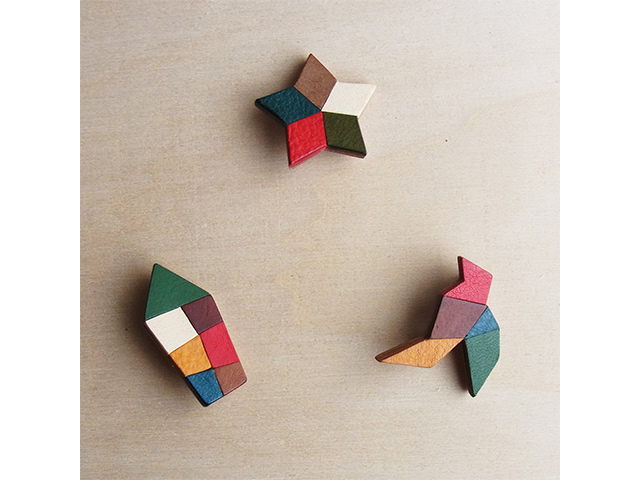 軽やかなタンニンレザーの端材を使い、お好きなデザインでブローチを作ります。