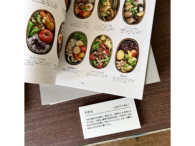 愛しのわっぱの追悼として制作され、また、この展示の図録としての役割も果たす本『手弁当』は、ひかるんが昨夏の終わりに松本に越してきてから、(僕らもまったく気づかないうちに)せっせと執筆を進め、(これまたいつの間に)市街地からすこし距離のある〈藤原印刷〉まで自転車で通い、打ち合わせを重ねた末に、完成を迎えた渾身の一冊。手間ひまかけてこさえられた、ギュッと詰まった弁当のごとく、ボリュームも色合いも味わいも満点です。
