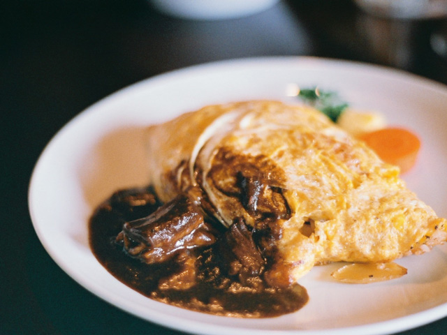 洋食屋〈おきな堂〉はそもそも、上土通りの菓子店〈翁堂〉から、その喫茶部門として昭和八年に独立した〈翁堂喫茶部〉に端を発する。〈翁堂〉創業者で伸光さんの曾祖父にあたる木内象次郎さんが「これからは喫茶だ」と考え、長女・とし路さんが結婚したとき、喫茶部門を立ち上げ、託した。そのとき、娘の慶事と独立を祝して建てたのが、いまも変わらない〈おきな堂〉だ。象次郎さんの予見はピタリと当たり〈翁堂喫茶部〉は洋食もある喫茶店として大いに賑わう。伸光さんの父、章皓さんの代になると、屋号を現在の〈おきな堂〉に改名。洋食店としての充実を図る。平成十年にはイタリア人シェフまで招き、手打ちパスタなどのメニューも加えた。いまやお馴染みのフレーズ「時代遅れの洋食屋」を掲げたのも章皓さんだ。