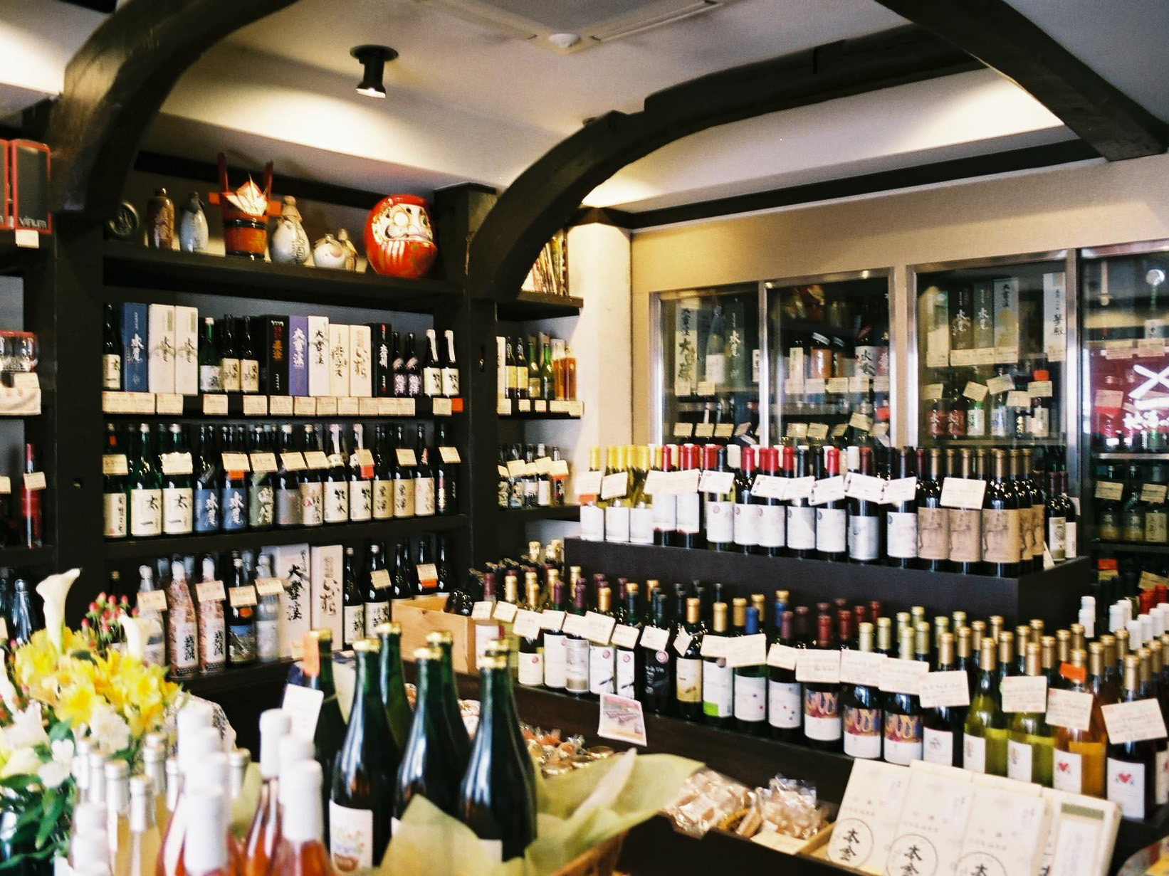 家業が酒屋という環境で生まれ育った忠之さんは、東京の大学に進学、卒業後、高田馬場〈佐々木酒店〉で配達、集金などの経験を積み、昭和六十年に帰郷。その三年後には悦子さんと結婚して、親子二代で〈中島酒店〉を切り盛りしていった。悦子さんは、平成六年に唎酒師の資格を取り、その二年後にワインアドバイザーも取得すると、酒のセレクトを徐々に任されるようになる。酒販免許が自由化されて、スーパーやコンビニにも酒が並び始めるようになったこの時代、これから先は「ファンをつくるしかない」そして「そのためには知識が必要」と悦子さんは考えた。先代までに築かれた地酒のベースは大切に守りつつ、ワインにも注力。ワインインポーター、金井麻紀子さんによるセレクション「マキコレ」との出会いをきっかけに、自然派ワインの品揃えも充実させていった。