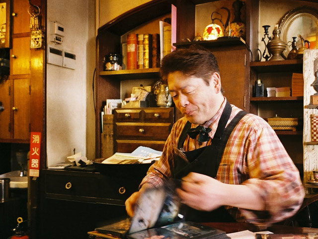 「空間の雰囲気がそこにいる人の気分をつくる」そう確信していた芳樹さんは、珈琲を美味しいと感じる空間をつくるべく、アートやアンティーク、植物の要素をひとつずつ取り入れて「アベワールド」を構築していった。例えば、カウンター正面の壁には、藤田嗣治の絵画『カフェ』が飾られているが、その中に描かれているグラスと同じグラスで供されるメニューがある。この徹底した創意工夫こそ「珈琲美学」を店名に冠する所以である。名物のモカパフェやカフェオレの演出も「美味しい」の手前に愉しさや驚きを置くことで、その美味しさが何倍にも膨れることを熟知している芳樹さんの美学に基づくアイデアだ。ユニークなモーニングの仕組みも然り。「まずは自分が楽しくないと」と、常に次のトライを続けてきた。