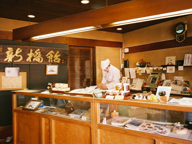 〈新橋屋飴店〉は江戸嘉永年間の創業。詳細は不明だが、元々は武家だったそうだ。澄んだ空気と清らかな水に恵まれた信州松本で、地元のもち米と麦芽だけでつくる純粋な米飴にこだわって、百六十年以上、この仕事を続けてきた。往時はお遣い物としての需要も高く、個人宅への配達も数多あった。いまも人気の土産物として約二十件の取引先に卸している。どこも長い付き合いだ。新春の「あめ市」で〈新橋屋飴店〉の「福あめ」を求めることを毎年の楽しみにしている人も多く、従業員の皆さんは「この味を永く伝えていきたい」と朗らかに笑い、口を揃える。信州の風土が詰まったこの飴を、旅先の誰かに届けることが楽しみな僕も、そのことを願ってやまない。松本に〈新橋屋飴店〉あり。