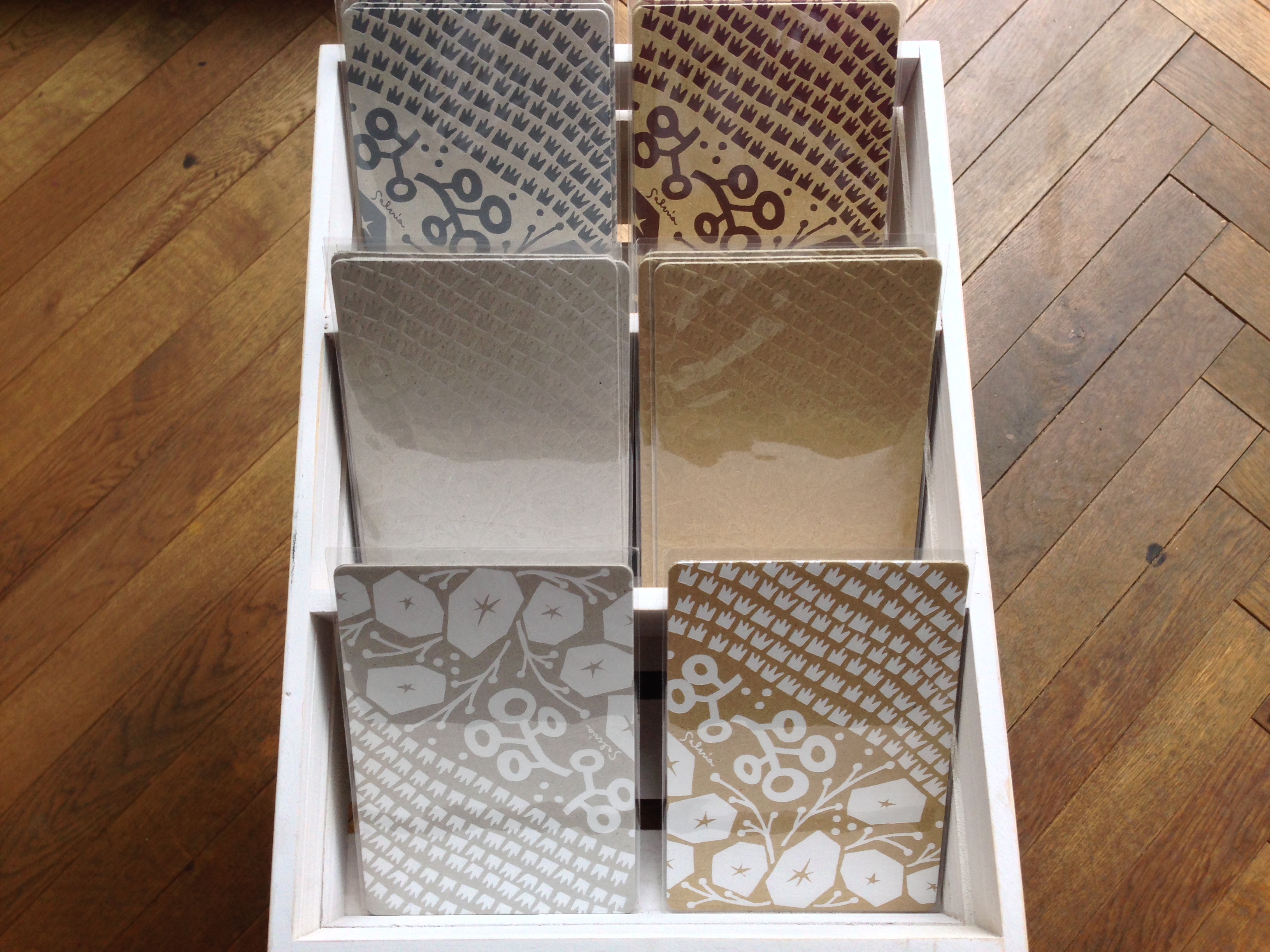 竹内紙器製作所に技術によって、エンボス加工で彩られたカード。